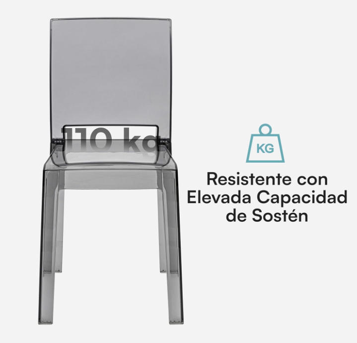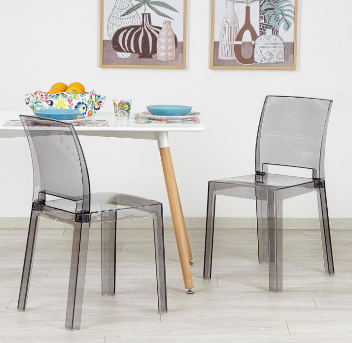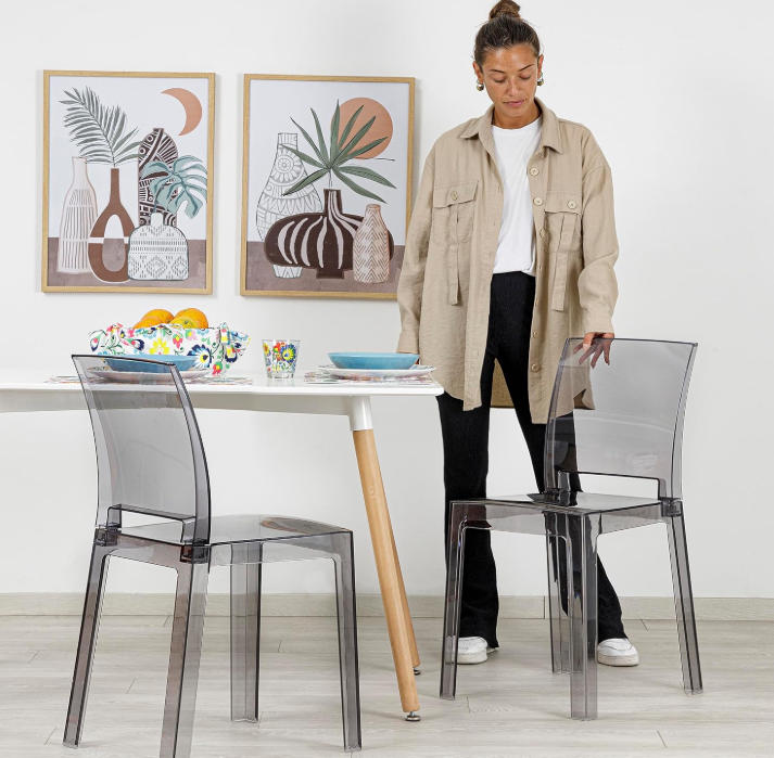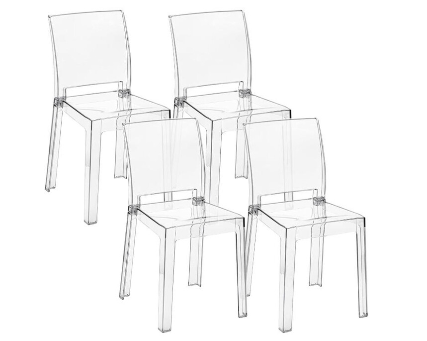 Home Set of 4 Durable Polycarbonate Chairs, Detachable in 2 Pieces, Ergonomic Seat with Curved Backrest, Transparent, 36 x 81 x 43 cm